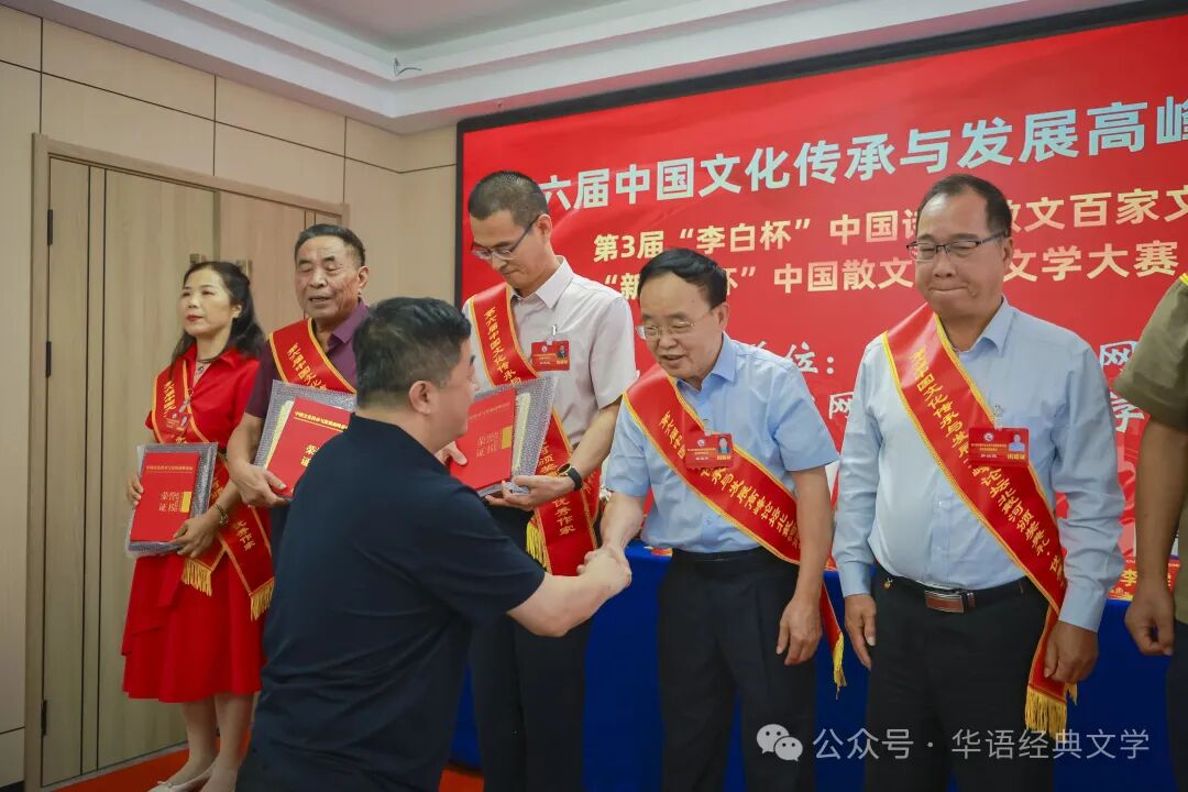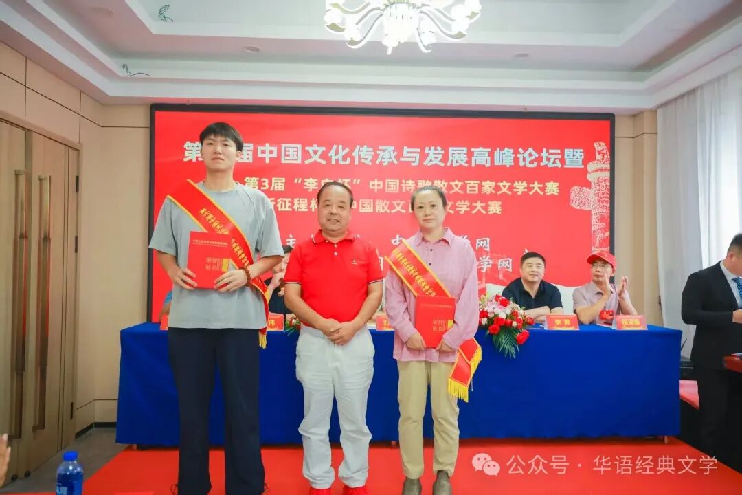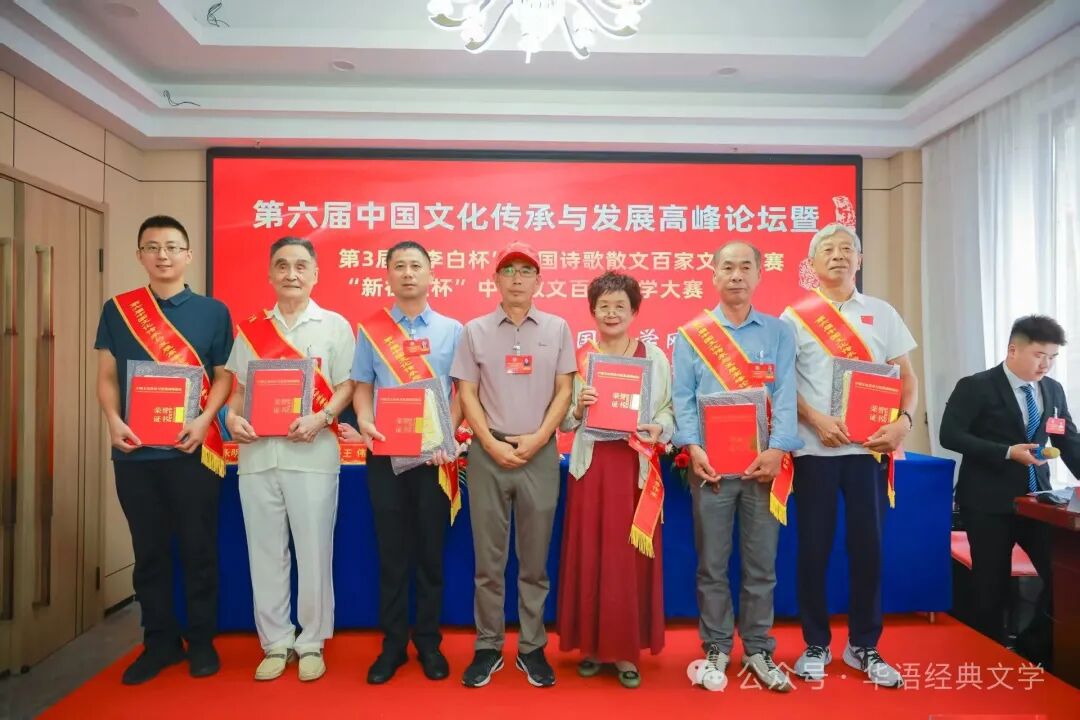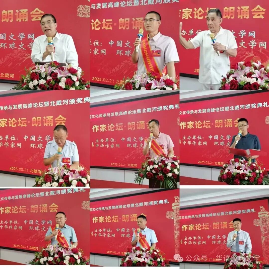 中国文学网讯:燕赵大地钟灵毓秀,北戴河畔诗意绽放。由中国文学网、中华作家网、环球文学网等主办的第六届中国文化传承与发展高峰论坛暨第3届“李白杯”中国诗歌散文百家文学大赛新征程杯颁奖大会系列活动,8月20日-23日在秦皇岛北戴河举行,相关领导专家和来自全国各地的获奖作家出席大会。